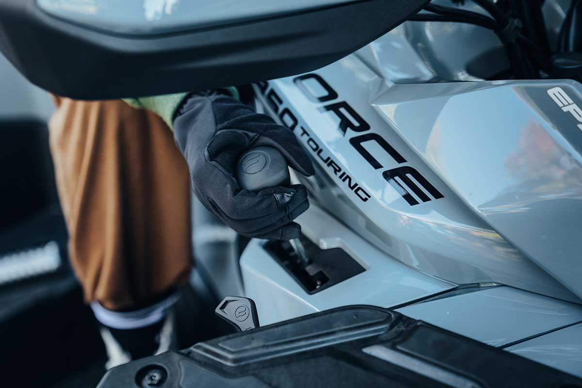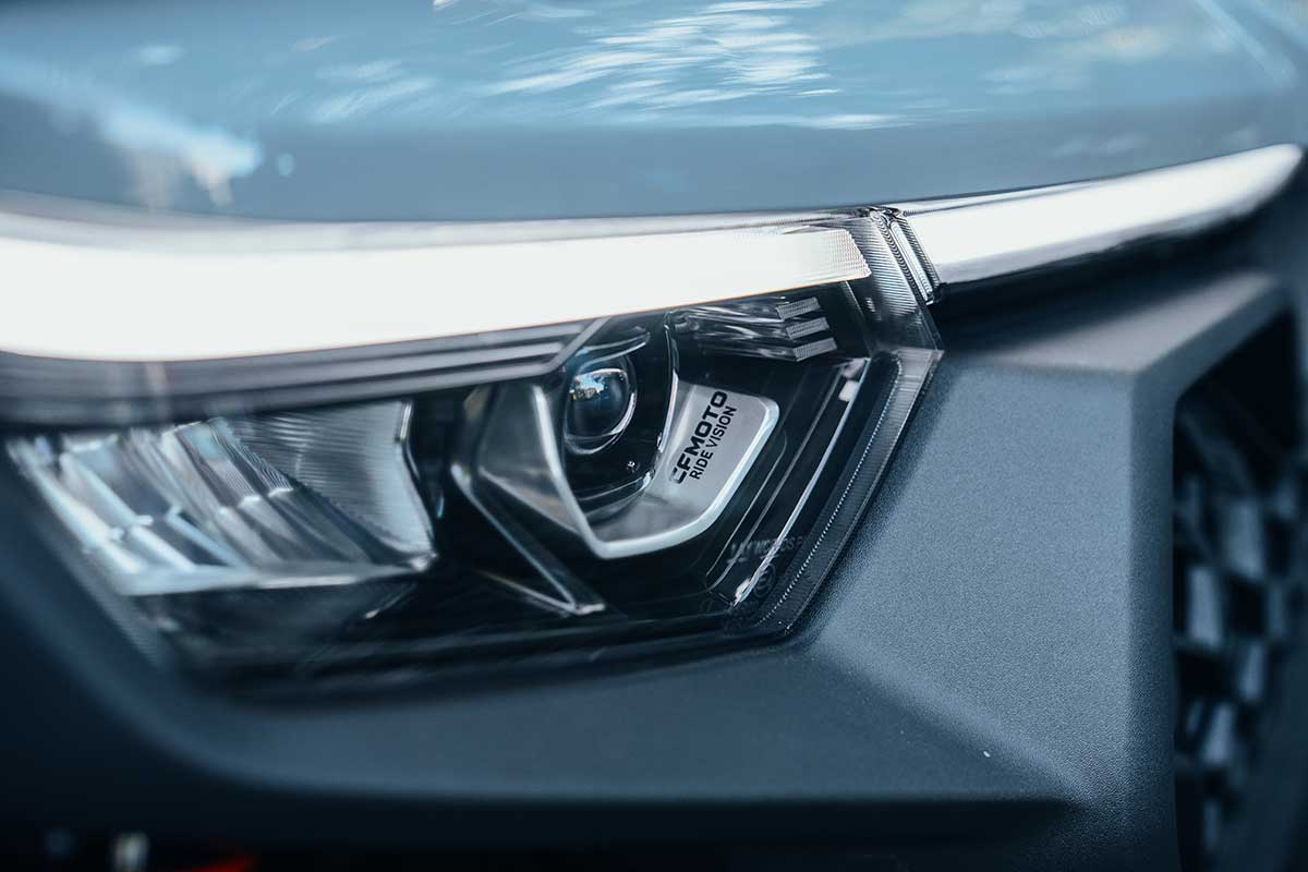 Třešničkou na dortu je možnost připojení k telefonu přes aplikaci CFMOTO RIDE, což znamená okamžitý přístup k palubním údajům v reálném čase např.: množství paliva, stav baterie, záznam o jízdě, samodiagnostika vybraných základních funkcí před jízdou.