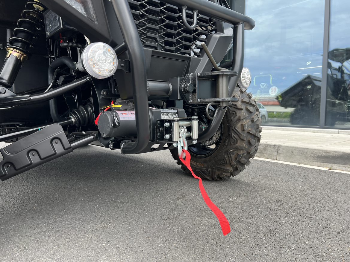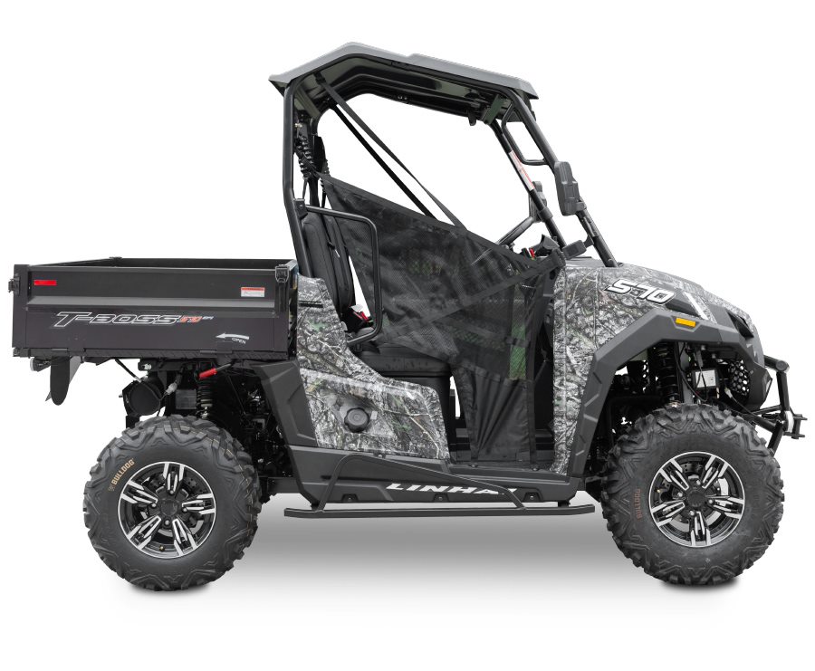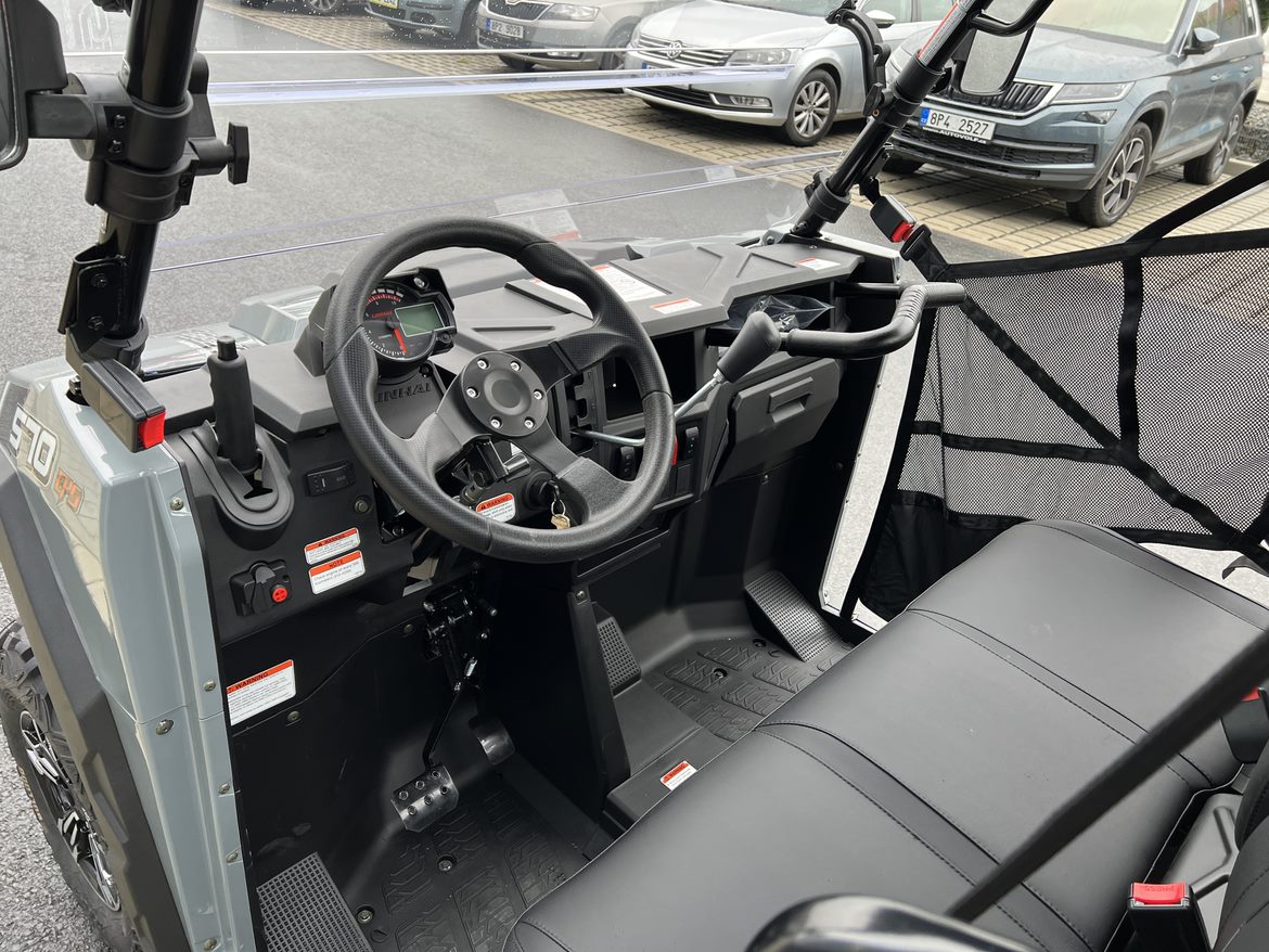 S motorem 500 ccm má tento sympatický náklaďáček dostatek síly pro každodenní práci, hravě si poradí s plně naloženou korbou i s připojeným vozíkem. Díky silné redukci a připojitelnému pohonu 4x4 vás i s nákladem dostane na ta nejnepřístupnější místa. Při sklápění korby pomáhají účinné plynové vzpěry, pevná a odolná rámová klec chrání posádku při jízdě lesem, a společně s tříbodovými bezpečnostními pásy i při případné nehodě. Linhai UTV 550 4x4 je neúnavný pomocník majitelů farem, myslivců nebo při údržbě zeleně, vhodný pro každého, kdo dává přednost volantu a sezení vedle sebe, pro každého, kdo nechce za deště moknout jako na čtyřkolce. Vysokou užitnou hodnotu můžete ještě zvýšit spoustou doplňků a příslušenství, jako například čelní sklo, držáky nářadí nebo zbraní, postřikovače, mulčovače, radlice a mnoho dalších.